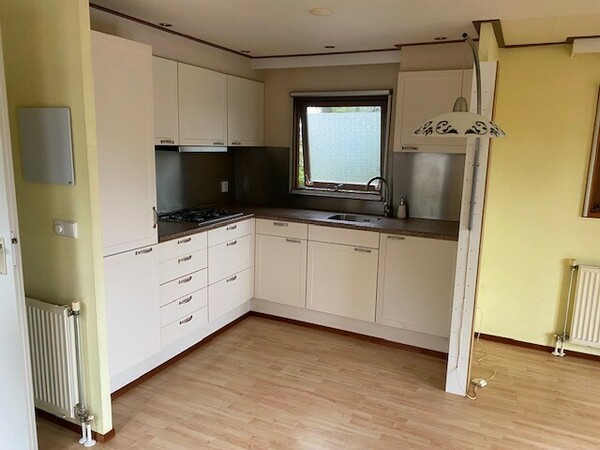 Keuken: | Open keuken met inbouwapparatuur kookplaat, koelvriescombinatie en afzuigkap |